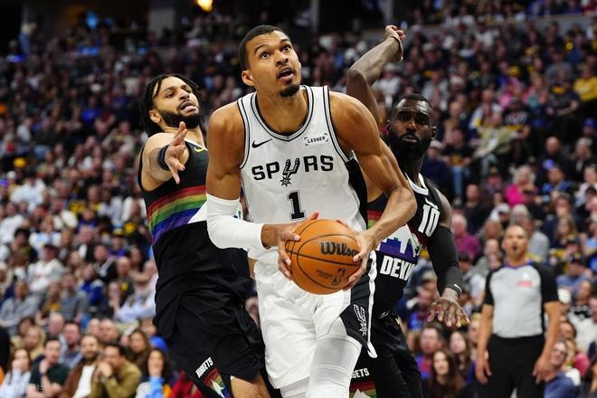马刺也不是老实人,文班亚马在昨天对阵独行侠的比赛复出,狂砍40分13篮板3助攻的顶级数据,这一来本赛季就凑够65场比赛,具备评选各个大奖的资格!那么最后一场文班亚马到底打不打呢?难题就抛给了掘金。